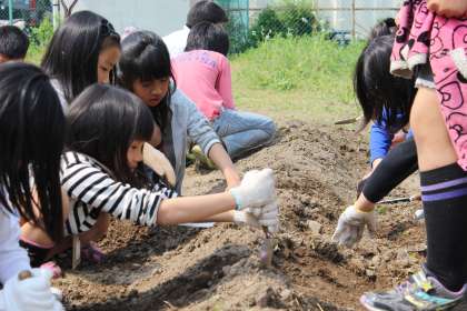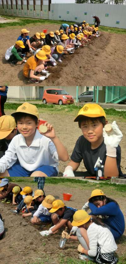 5年生 総合 イモ植えのようす 公開日 2014/04/17 更新日 2014/04/17 5年生 4月17日(木) 5年生の総合学習のようすです。食育の一環で学校の畑におイモを植えました。芽が出て茎が伸びたら、茎に土をかぶせる予定です。 「芽が出るのが楽しみだ。」とわくわくしながらおイモを植えていました。