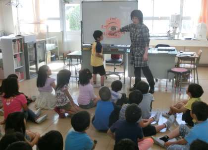 10月14日(火)、1年生が視力測定を行いました。視力測定の前に、保健の先生といっしょに目に関わる部分の呼び方を確かめていました。