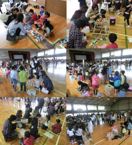 10月20日(月)、2年生は生活科で「子どもまつり(秋まつり)」を行いました。3時間目には、授業参観として保護者の皆さんに参加していただき、子どもたちが用意したお店屋さんやゲーム屋さんのお客さんになってもらいました。4時間目には、1年生を招待して行いました。グループごとにいろいろ工夫して、自分たちで作った品物を買ってもらったり、ゲームをしてもらったりしました。