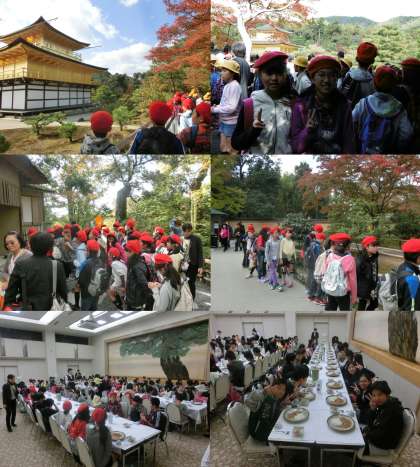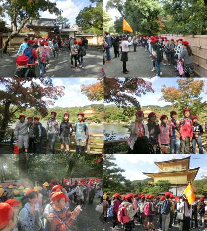 遅くなりましたが、修学旅行当日にお伝えできなかった写真を掲載します。今回は、先生たちが撮影した写真と班で撮影した写真から紹介します。出発から、金閣寺の見学と昼食のようすです。