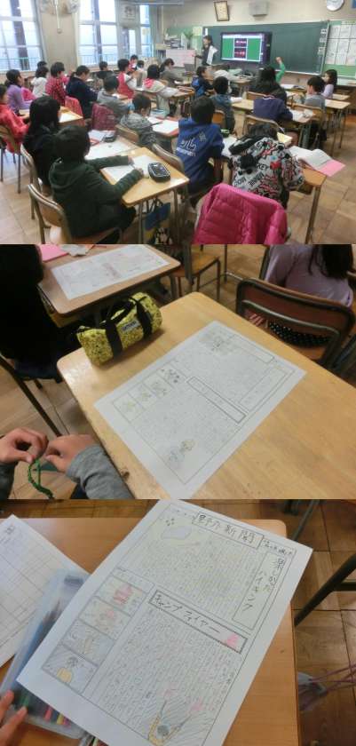 11月25日(火)、野外学習を終えた5年生が、新聞作りに取り組んでいました。3日間の野外学習で学んだことを、思い出新聞にまとめていました。ハイキングで拾った落ち葉をパウチではさんで、しおりを作っていました。