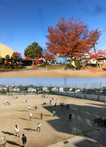 11月27日(木)、昨日までの雨もあがり、天気のよい一日でした。名古屋地方気象台では、午後1時半頃に18.6度を記録しました。久しぶりの快晴で、子どもたちは運動場で元気よく過ごしていました。