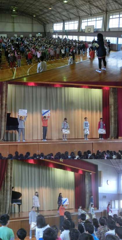 歌声集会の終わりに、来週行う「赤い羽根募金運動」への協力のお願いが児童会役員からありました。