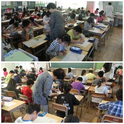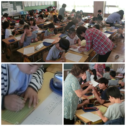 社会福祉協議会より講師をお招きし福祉実践教室が開催されました。今日は点字のつくりや書き方について教えていただき、簡単な文字を実際に作ってみました。初めての体験で苦労しながらも、一生懸命に取り組んでいました。