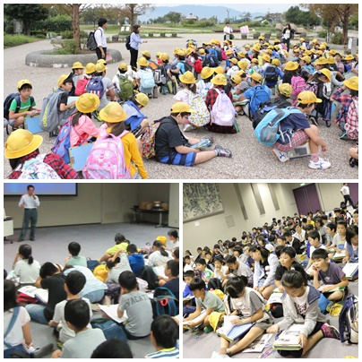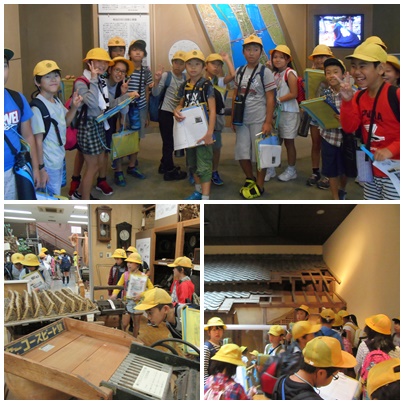 輪中の里・木曽三川公園へ校外学習に出かけました。輪中の里では、水害から耕地を守るための様々な工夫を見学しました。木曽三川公園では展望台に上り、三つの川からできる土地の様子を上から見ることで、その特徴を実感しました。