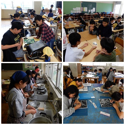 室内では文化クラブが、作品作りや演奏、読書やゲーム、料理作りを楽しみました。