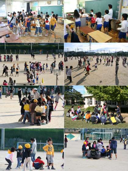 昨日26日と本日27日の朝は、ふれあいタイム。「秋を感じて楽しく遊ぼう!」をテーマに、たてわり班ごとに活動を行いました。今日は、急に寒くなりましたが、みんな元気に動き回りました。