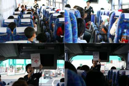 出発して1時間。現在、亀山市付近を走っています。バスの中では、バスレクで、たいへん盛り上がっています。こんなに元気で、最後までもつのでしょうか?