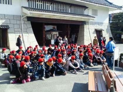 最後の見学地の映画村に到着。昼食が終わり、班行動で見学開始です。