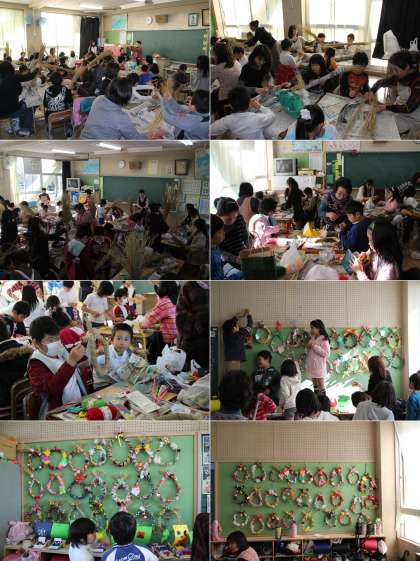 本日8日(水)、3年は、総合の時間でこれまで取り組んできた「稲」の学習の最終段階として、「わら」を使ったリース作りをしました。今日は、地域のみなさんにゲストティーチャーとして指導して頂き、さらに保護者の皆さんにもお手伝いして頂きました。最初、わらをそろえるのに苦労をしましたが、すばらしいリースを作ることができました。ご指導頂いたみなさん、どうもありがとうございました。
