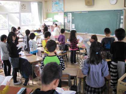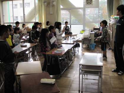 11月9日(金)、朝の会での歌練習のようすです。11月の歌は、『マイ バラード』です。作詞作曲をされた松井孝夫さんが、中学校の先生をされていた時に作られた曲だそうです。とても心に響くメロディです。11月末の歌声集会まで、各学級で毎朝歌います。