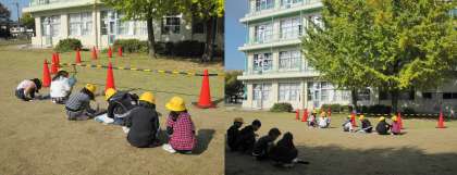 11月12日(月)、2年生が生活科で「秋さがし」をしていました。今日は、2本のイチョウの木の前で、オスの木とメスの木を比べながらスケッチを描いていました。右側のメスのイチョウの木にだけたくさんのギンナンがついているようすを、子どもたちは発見したようでした。