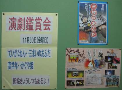 11月30日(金)に、大手小学校体育館で、芸術鑑賞会を行います。今年は、劇団かかし座による「影絵劇」です。午前と午後の部の2回行います。
