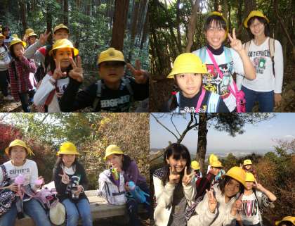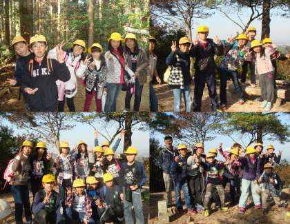 ハイキングのようすです。弥勒山の頂上に登り、とてもいい眺めでした。