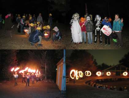 野外学習の思い出 その13 公開日 2012/11/25 更新日 2012/11/25 5年生 ハイキング・野外炊飯・森のビンゴと、活動を重ねるごとに班のきずなも強くなってきました。夕食の後には、ナイトウオーキングをしました。そして、1日目にできなかったトーチトワリングを営火場で行いました。