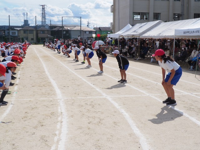 昨日の雨で開催が心配されましたが、無事にスポーツフェスティバルを終えることができました。本日は本当にたくさんの保護者の皆様にご来校いただき、温かいご声援を賜り、心より感謝申し上げます。また、スポーツ振興会、セイフティ大手、親地の会の皆様には、ラジオ体操、地域種目、会場警備、片付けに至るまで、多大なるご協力をいただき、重ねてお礼申し上げます。
