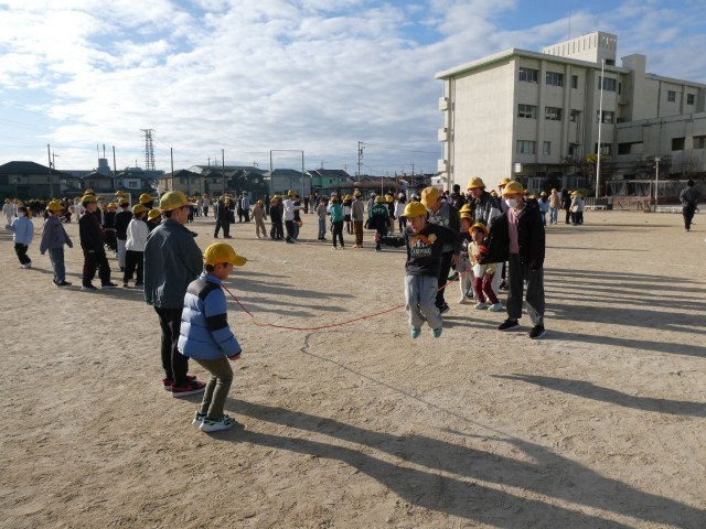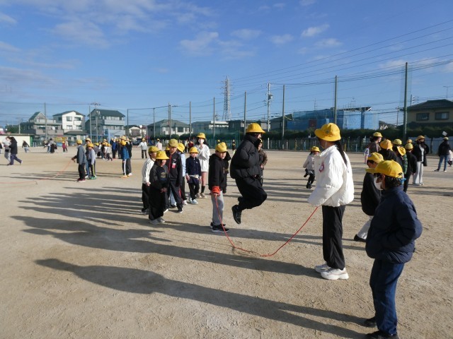 業前に、児童会活動として「大なわ大会」の練習会を行いました。この行事では、クラスの団結を高める「クラスチャレンジ」と、ペア学年との交流を深める「ペアチャレンジ」が計画されています。今日の「ペアチャレンジ」の練習では、ペア班ごとに集まり、高学年が声をかけながら縄を回して低学年が跳ぶなど、協力して練習に励む姿が見られました。本番の「大なわ大会」は2月3日(火)に開催される予定です。大なわ練習を通して、心を一つにすることを楽しんでほしいと思います。