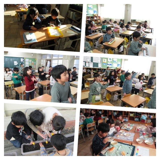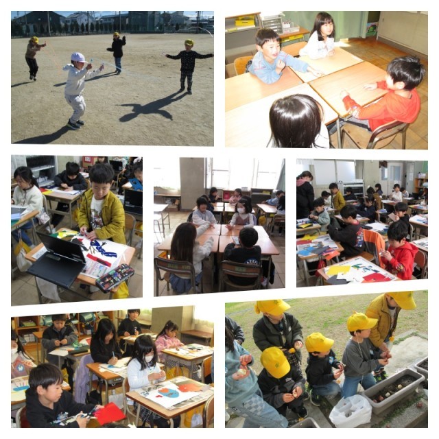1年生 1月のぴかいち! 公開日 2026/02/03 更新日 2026/02/02 1年生 大手小学校のぴかいちさんたちは、寒さに負けず3学期も元気に学校生活を過ごしています。6年生が考えた遊びを各ペア班に分かれて6年生と一緒に楽しんだり、羽根つきやお手玉などの昔から伝わる遊びも楽しんだりすることができました。チューリップの球根植え、なわとびの練習、図工の色版画の制作もがんばりました。 +6