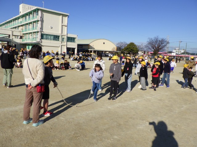 運動場には、寒さを吹き飛ばすような子どもたちの熱気があふれていました。この大会に向けて、どのクラスも休み時間などを使い、今まで団結して練習してきました。 本番ではペアチャレンジとクラスチャレンジが行われ、どの子も一生懸命がんばっていました。 真剣な表情で縄を見つめる目、記録が更新された瞬間の笑顔、そして失敗しても「大丈夫!大丈夫!」と励まし合う声で、学校全体が温かい応援の空気に包まれた素敵な時間となりました。