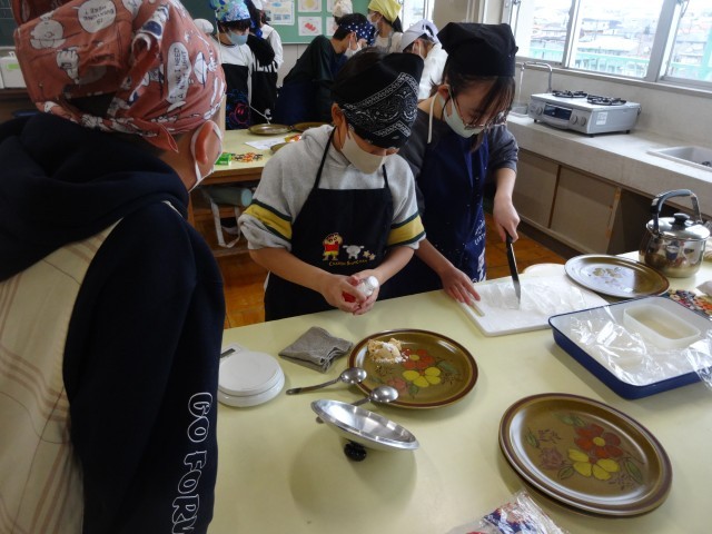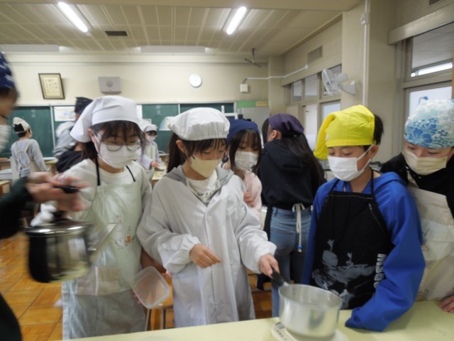 家庭科の学習の締めくくりとして、わらび餅作りに挑戦しました。