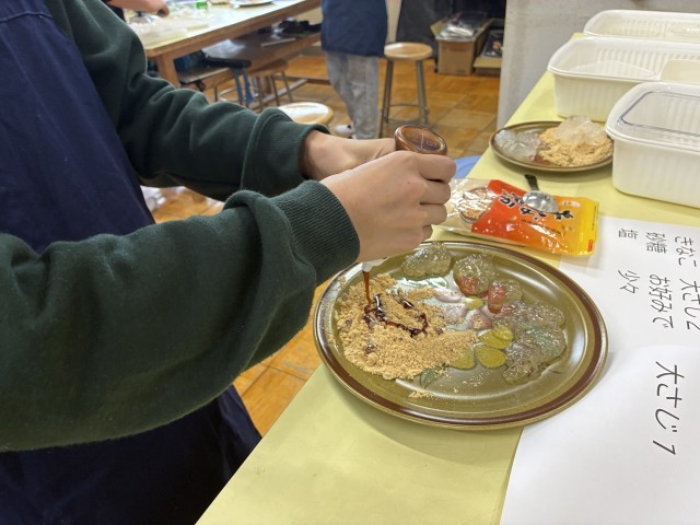 水の量や火加減を細かく調整し、「自分好みの硬さ」を目指して真剣に混ぜていました。完成したわらび餅を頬張り、あちこちから「おいしい!」と笑顔がこぼれる楽しいひとときとなりました。実習の最後には、昨年度から活動を支えてくださった大手サポーターズの皆様へ、感謝を込めたメッセージと合唱の動画を撮影しました。