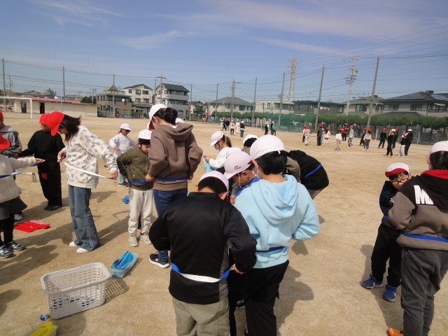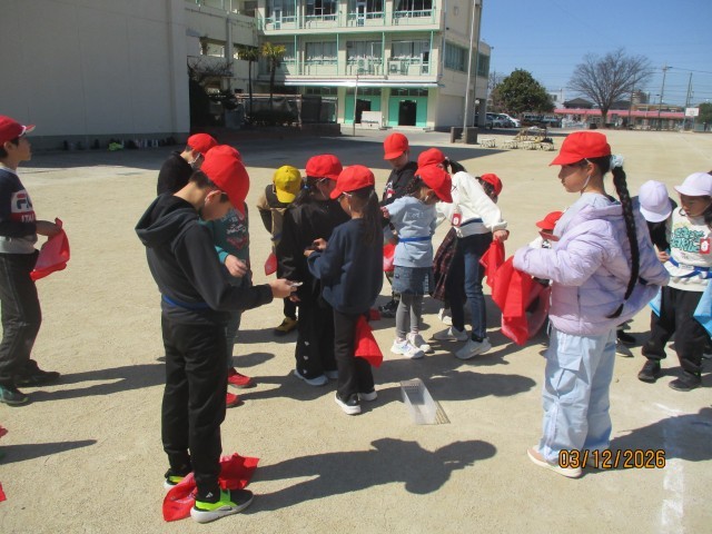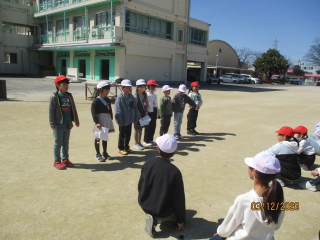 これまで大縄大会の練習で、跳び方を教えてもらったり、縄を回してもらったりとお世話になった5年生に感謝の気持ちを伝えるため、2年生が中心となって「5年生ありがとうの会」を開きました。当日は、2年生が司会進行や会の流れの説明を担当し、会を進めました。学級ごとに分かれて、ドッジボールやしっぽとりをして一緒に楽しい時間を過ごしました。また、お互いにメッセージカードを交換し、これまでの感謝の気持ちや「進級してもがんばろう」という思いを伝え合いました。「5年生に楽しんでもらえてうれしかった」「がんばって準備してよかった」と話す姿も見られ、子どもたちにとって心温まる時間となりました。