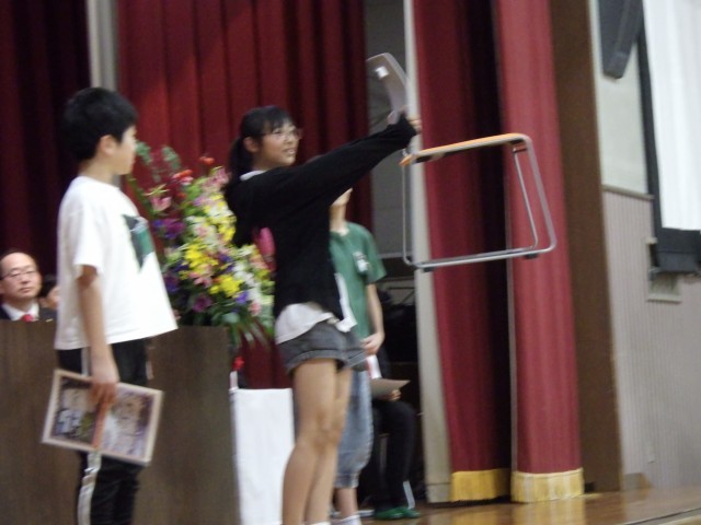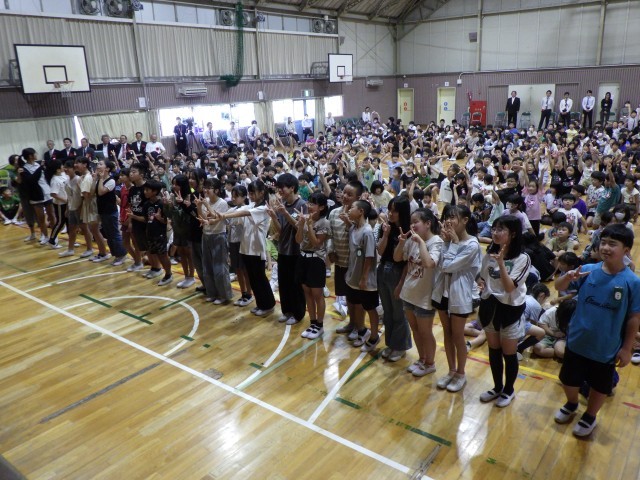 全校児童が体育館に集まり、児童集会を行いました。「ポーズ当てクイズ」では、リーダーと同じポーズをとれると喜んでいました。次の「三択クイズ」では、「6年生は何人いるでしょう」という問題に、実際に数えながら答える子も多く、楽しみながら真剣に考えていました。最後の「じゃんけん対決」では、全校で大いに盛り上がり、笑顔いっぱいの時間となりました。前期児童会役員の6人と代表委員の6年生、臨機応変に動き、大手小学校のみんなを笑顔にしてくれてありがとう!これからも学校の代表として、みんなで協力して楽しい学校をつくっていきましょう。