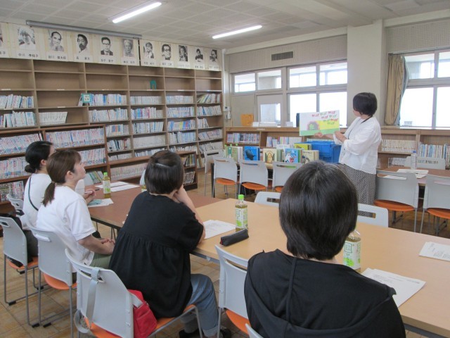 本日13時より図書室にて、春日井図書館の方を講師にお招きし、「読み聞かせ講習会」を実施しました。