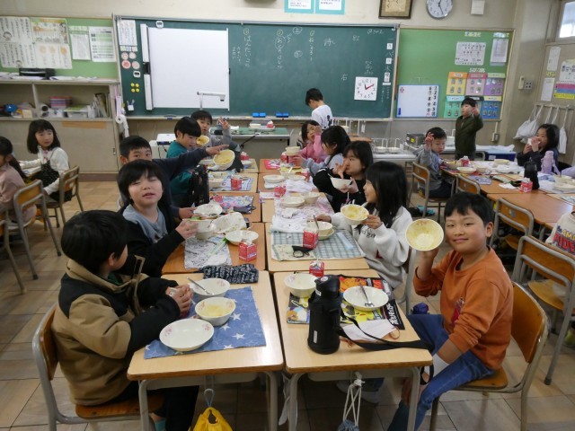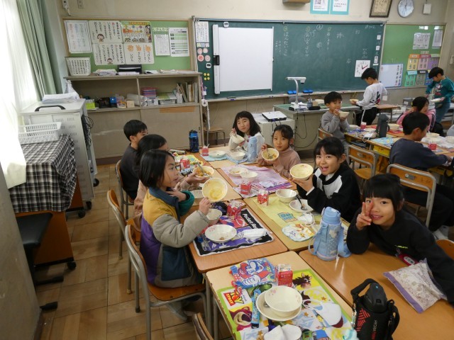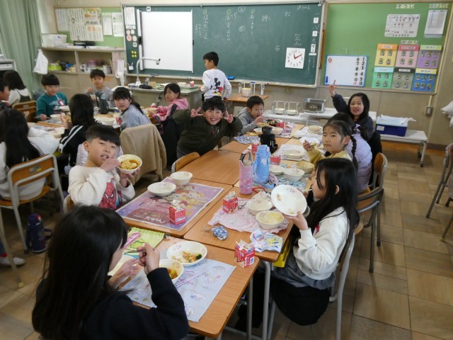3学期の給食が始まりました 。本日のメニューは、ごはん、牛乳、えがおのカレーシチュー、花野菜サラダです。特に子供たちに大人気の「えがおのカレーシチュー」が登場すると、教室にはおいしそうな香りと笑顔が広がりました。あっという間に食べ終わってしまい、写真を撮るのが間に合わないほどでした。今学期もしっかり食べて、元気に学校生活を送ってほしいと思います。