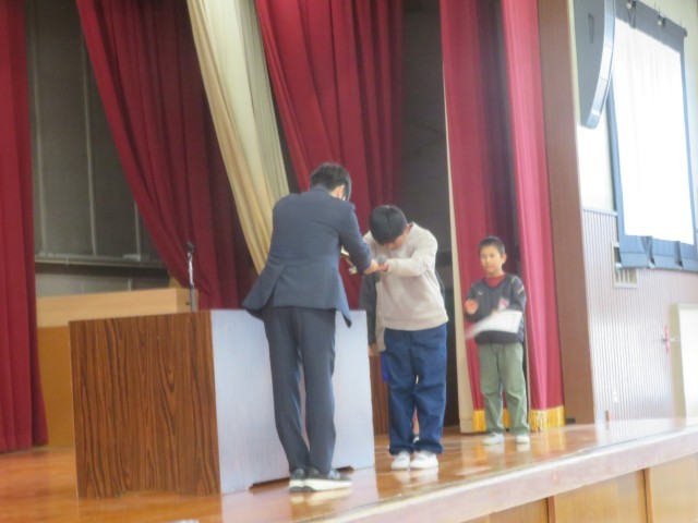 業前に、運動場で「短なわチャレンジ集会」を開催しました。体育委員の号令で準備体操をした後、学年ごとの課題に挑みました。1・2年生は後ろとび、3・4年生はあやとび、5・6年生は二重とびに挑戦。後半のチャレンジでは、引っかかったら座るルールの中、最後まで跳び続けようと真剣に取り組む姿が見られました。寒さに負けず練習の成果を発揮した子どもたち。これからも進んで体力づくりに励んでほしいと思います。