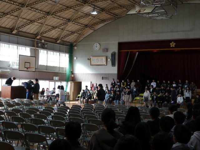 1時間目に、令和8年度前期児童会役員選挙の立会演説会を体育館で行いました。立候補者は「学校をより良くしたい」という熱い思いを堂々と発表しました。聞く側の児童も、児童会の一員だという自覚が感じられるような話を聞く姿勢でした。勇気をもって立候補した人、支えてきた責任者の人、円滑な運営に努めた選挙管理委員の人、みなさんの頑張りが、とてもカッコイイ役員選挙でした。