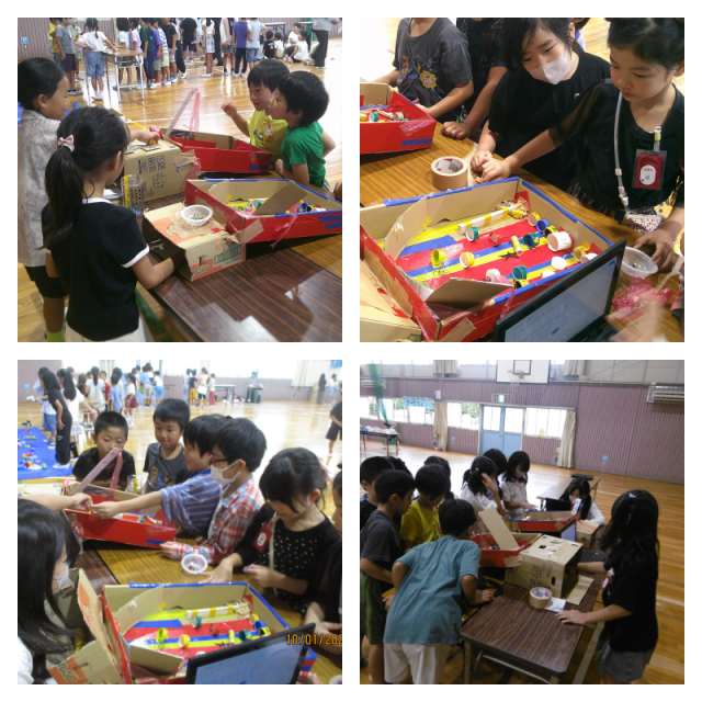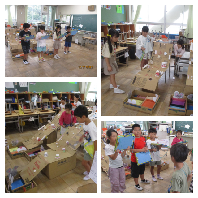 2年生は、9月27日に行う「おもちゃまつり」に向けて、準備をすすめています。1年生も楽しめるおもちゃは何か、話し合いながらおもちゃを作っていました。「おもちゃまつり」に向けて、力を合わせて用意していきましょう!