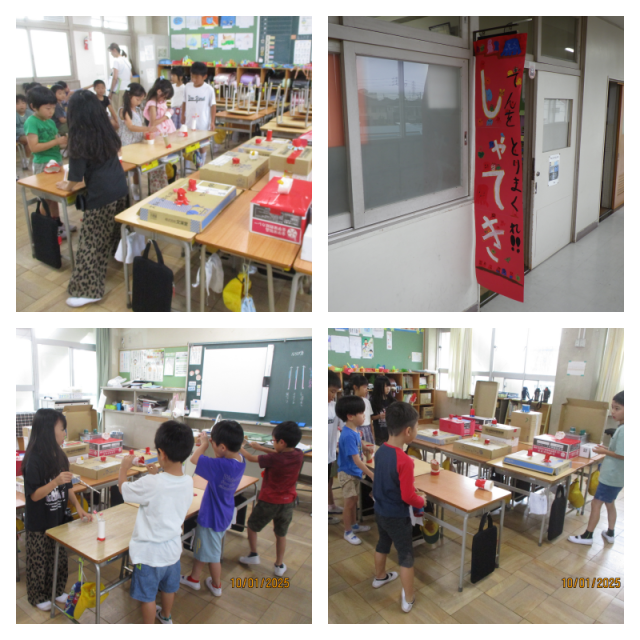 2年生が主催する「おもちゃまつり」が行われ、1年生を招待して、手作りのゲームや遊びを楽しんでもらいました。子どもたちは、それぞれのクラスで出し物を準備し、説明や案内の仕方を工夫して本番にのぞみました。