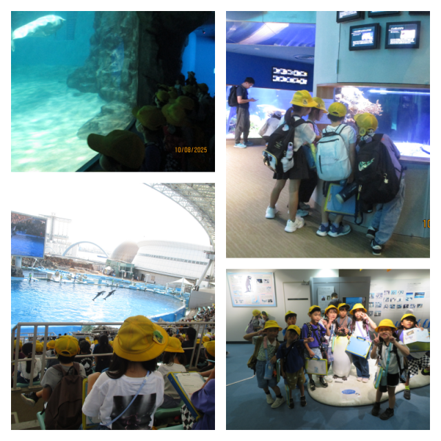 2年生は、国語で学習した「どうぶつ園のじゅうい」の学びとつなげて、名古屋港水族館へ校外学習に行ってきました。