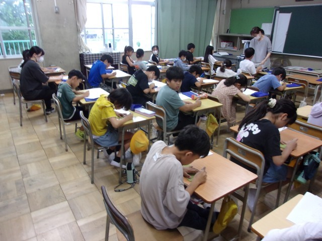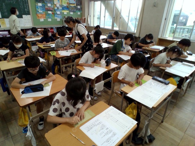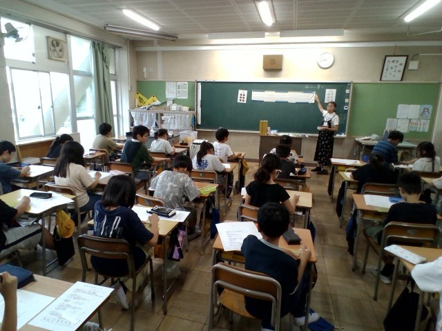 本日、日本己書道場から講師の方々をお呼びし、己書体験を行いました。己書という言葉を初めて聞いた子どもたちばかりでした。己書の実際の写真を見せていただくと「この看板知ってる!」「近くのスーパーにもある!」と身近に己書があることを知りました。また、普段の書道とは異なり、書き順を気にしなくてもよいこと、二重書きをしてもよいことなどに驚きの声をあげていました。己書の書き方を習った後、色紙に自分の好きなように楽しく書く子どもたちの顔は、自然と笑顔になっていました。最後は、講師の方に一人一人の作品を総評してもらいました。子どもたちは「毎週己書の授業がしたい!」「帰ったらすぐに練習する!」と感想を述べて、本当に楽しかったことが伝わりました。