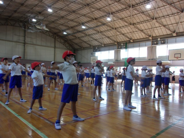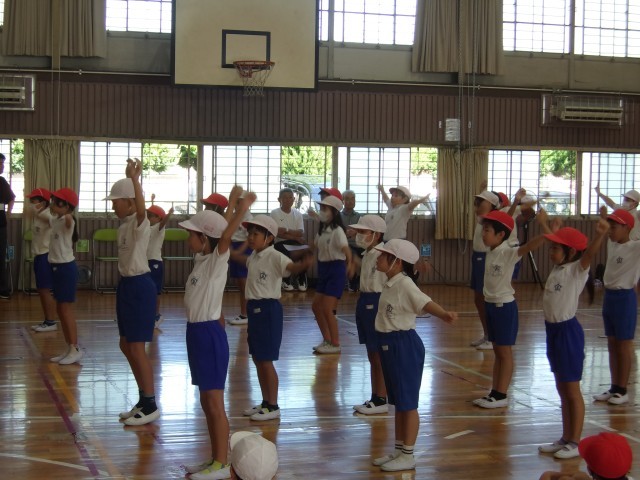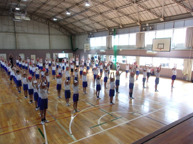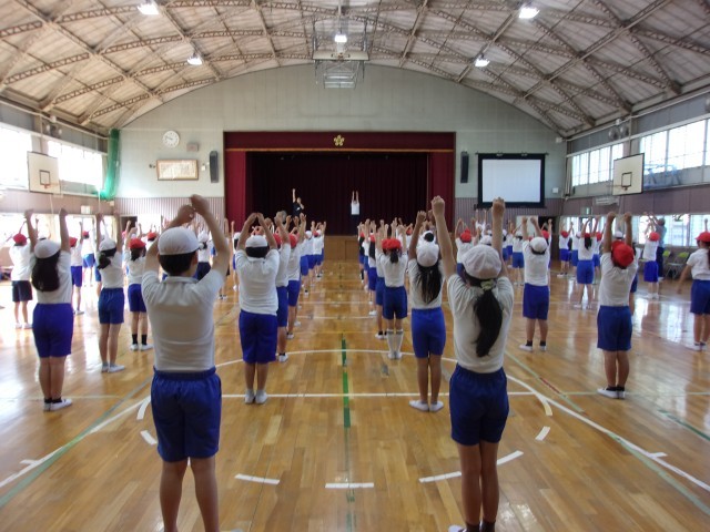 4年生は、今日の2時間目に、スポーツ振興会の方々にラジオ体操についての指導をしていただきました。初めてラジオ体操をする児童もたくさんいました。きれいに見える方法や、しっかりと体をほぐすためのコツなどを教えてもらいながら、一生懸命に取り組むことができました。