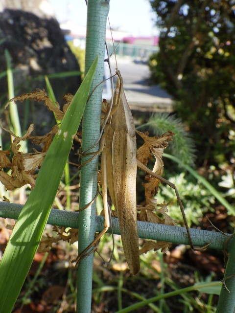 褐色型のクビキリギス。育った環境で色が違うようです。ピンクの子もいるらしいですよ。