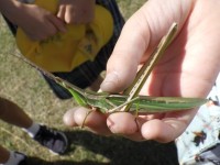 日本で一番デカいバッタ「ショウリョウバッタ」です。オスよりメスのほうが大きいんです。オンブバッタも同じですね。オスは飛ぶときに「キチキチ」と音を立てるので「キチキチバッタ」と呼ばれることも。この子は緑...