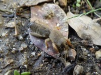 3年生の先生が、畑仕事をしていて見つけたようです。「ケラ」は「オケラ」とも呼ばれ、モグラの赤ちゃんのようです。土をかき分けて帰っていきました。@学年園