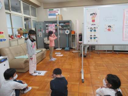 今日は、視力検査がありました。半分ずつの人数で保健室に行き、上手に検査を受けることができました。