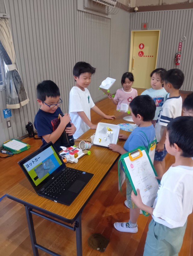 2年生が生活科のおもちゃまつりに、1年生を招待しました。喜ぶ1年生の姿に、2年生もうれしそうでした。