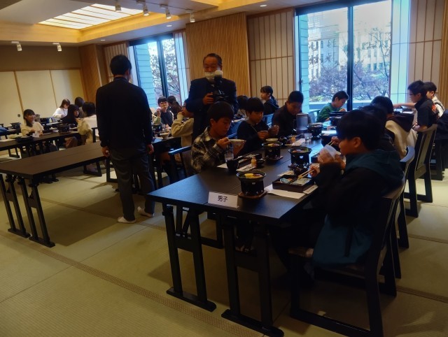 修学旅行2日目です。みんな元気な様子でした。朝ご飯を食べて、ホテルを出発します!