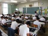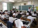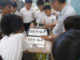 今年度初めての書の時間でした。講師の山本先生に「歴史」という字の書き方を教えていただきました。静かな教室で集中して書に取り組む6年生、立派でした。