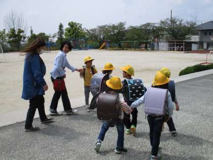 一年生の給食開始までの間、一年生の保護者のみなさんに協力していただいて、子どもたちが安全に下校できるように「見守り下校」を行っています。見守り下校も2日目、だんだんスムーズに帰れるようになってきました。20日(金)までですが、よろしくお願いします。