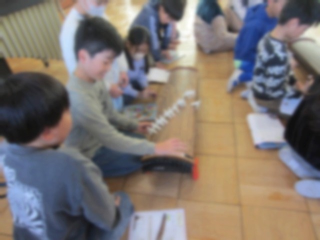 長い休み時間は、音楽室へ練習しに来てよいと聞くと、昼放課に早速たくさんの子が練習していました。今年は、学校の箏だけでなく、他校や廣岡先生の私物をお借りして、たくさんの箏で練習できます。信頼して貸していただいていることと、4年生のためにたくさんの人が、時間をかけて準備していることに感謝して取り組んでほしいと思います。
