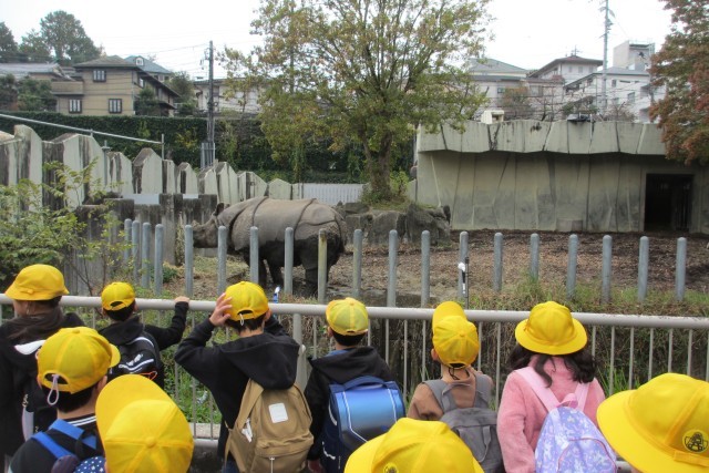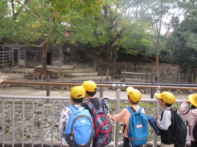 1,2年生で東山動物園に行ってきました。子どもたちは、たくさんの動物に目を輝かせ、楽しそうに見学していました。