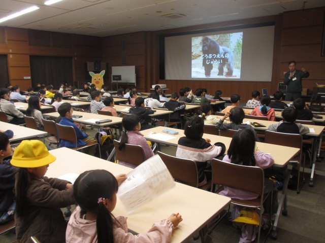動物会館では、動物園の職員の方からお話を聞きました。獣医さんの仕事について、貴重な写真や動画をまじえながら詳しく教えてもらうことができました。