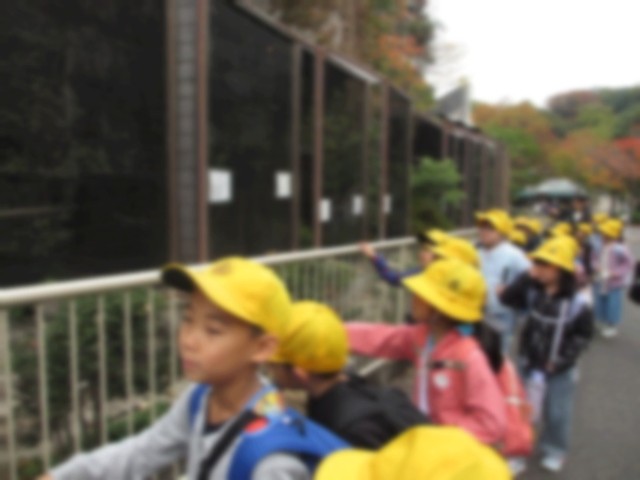 本日、東山動物園に校外学習に行ってきました。行きのバスでは、動物クイズで盛り上がりました。動物園に到着してからは、園内を回りました。フレンズ班での並び順で回ったので、1年生の子に優しく声をかけている姿も見られました。また、ゴリラを見ていた時に、座っていたゴリラが急に歩き出し、少し驚いた様子でした。動物会館では、動物園の獣医についての話を聞きました。東山動物園専用の動物病院を写真で見たり、ライオンの治療をする時の麻酔をする場面を動画で見たりしました。