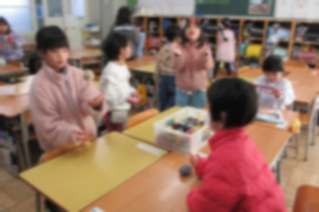 生活科では、けん玉やこま、お手玉などの昔遊びをしたり、凧を作ったりしました。
