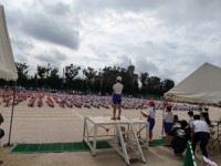 音遊「未来へ」は、フラッグと組体操でした。V字バランスやブリッジ、ポーズが決まる度に拍手が起こりました。